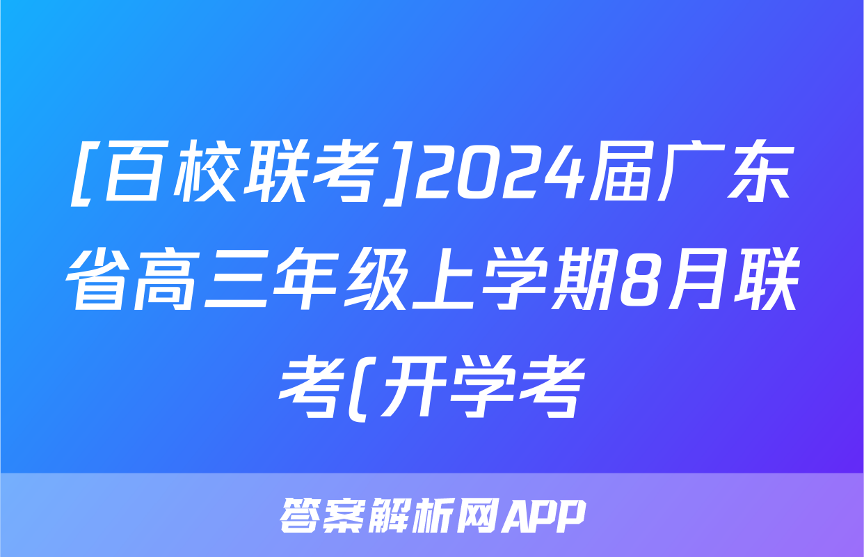 [百校联考]2024届广东省高三年级上学期8月联考(开学考)英语正在持续更新,目前2024-2025英语周报答案网为大家整理了相关试题及答案,供大家查缺补漏,高效提升成绩。