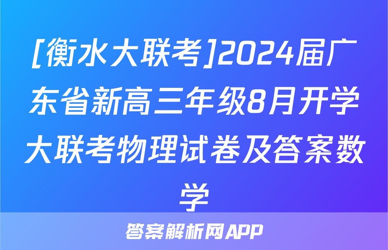 [衡水大联考]2024届广东省新高三年级8月开学大联考物理试卷及答案数学