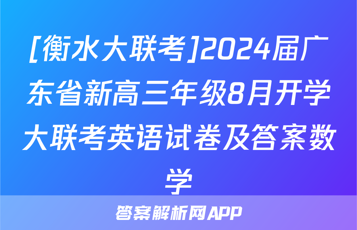 [衡水大联考]2024届广东省新高三年级8月开学大联考英语试卷及答案数学正在持续更新,目前2024-2025英语周报答案网为大家整理了相关试题及答案,供大家查缺补漏,高效提升成绩。