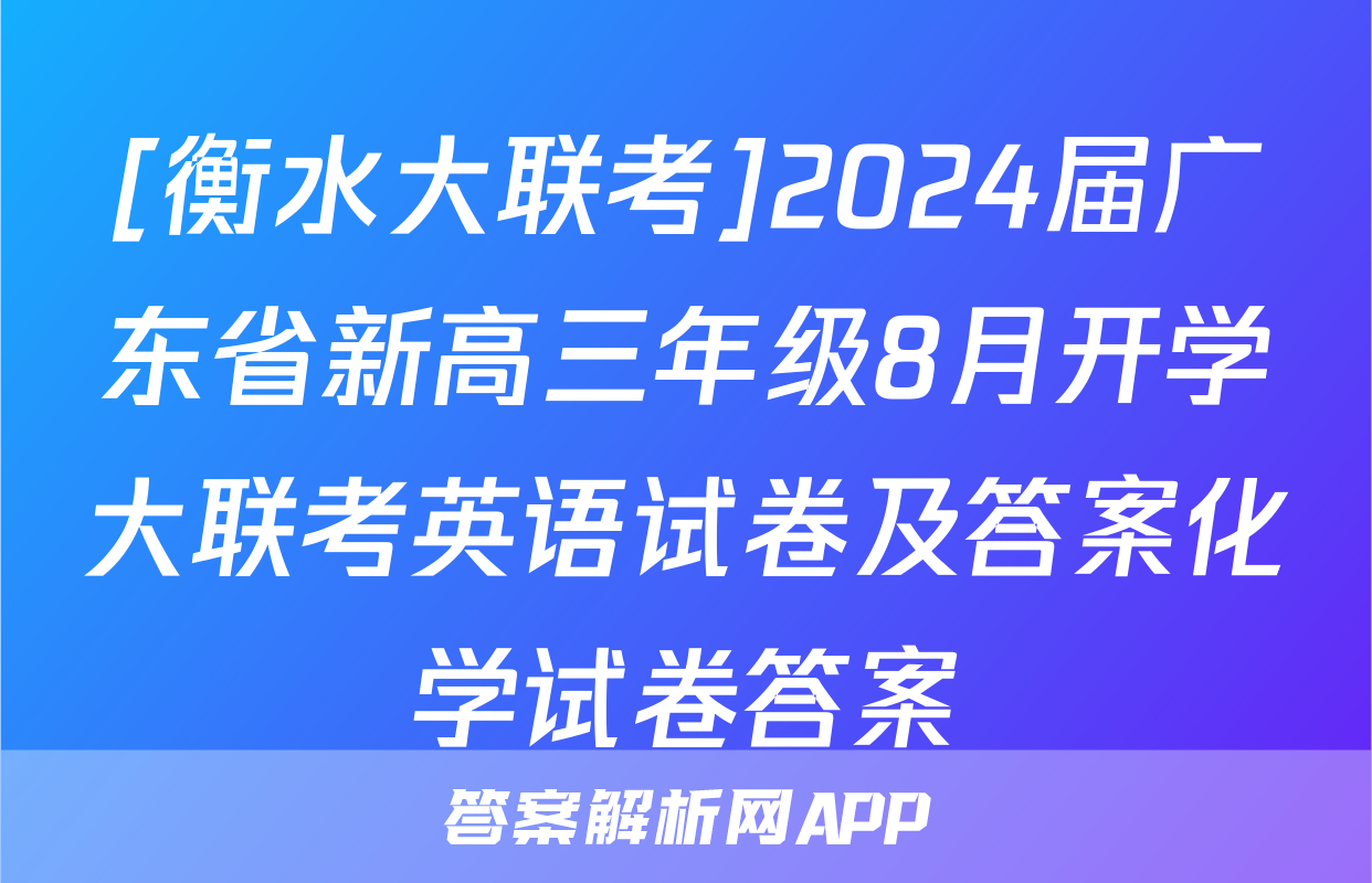 [衡水大联考]2024届广东省新高三年级8月开学大联考英语试卷及答案化学试卷答案
