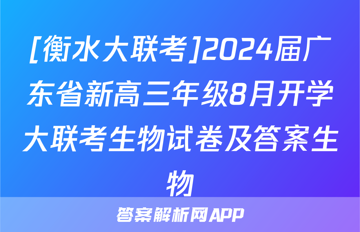 [衡水大联考]2024届广东省新高三年级8月开学大联考生物试卷及答案生物正在持续更新,目前2024-2025英语周报答案网为大家整理了相关试题及答案,供大家查缺补漏,高效提升成绩。