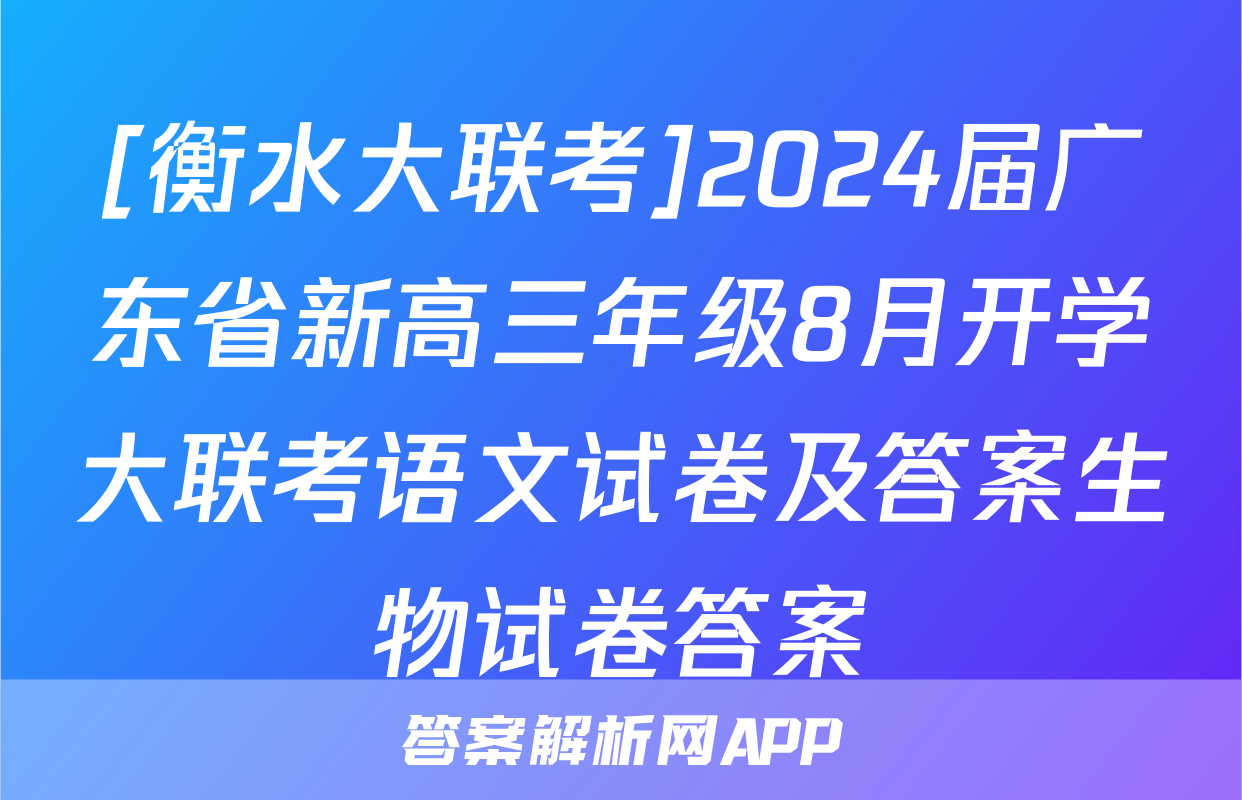 [衡水大联考]2024届广东省新高三年级8月开学大联考语文试卷及答案生物试卷答案