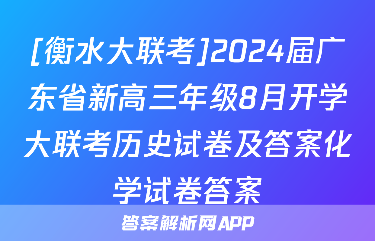 [衡水大联考]2024届广东省新高三年级8月开学大联考历史试卷及答案化学试卷答案