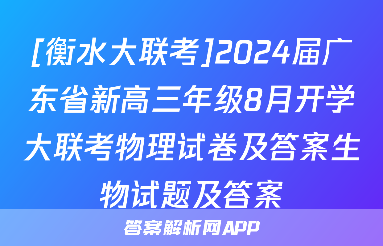 [衡水大联考]2024届广东省新高三年级8月开学大联考物理试卷及答案生物试题及答案