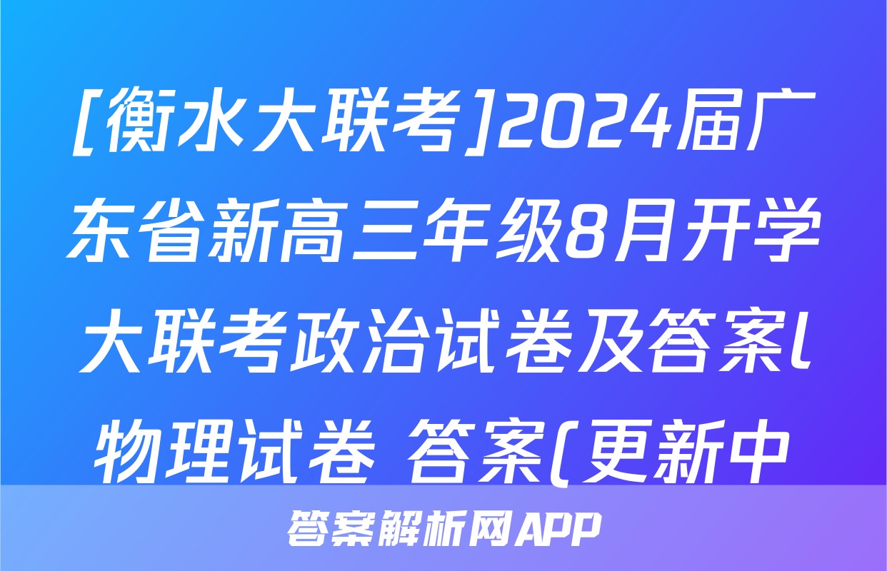 [衡水大联考]2024届广东省新高三年级8月开学大联考政治试卷及答案l物理试卷 答案(更新中)