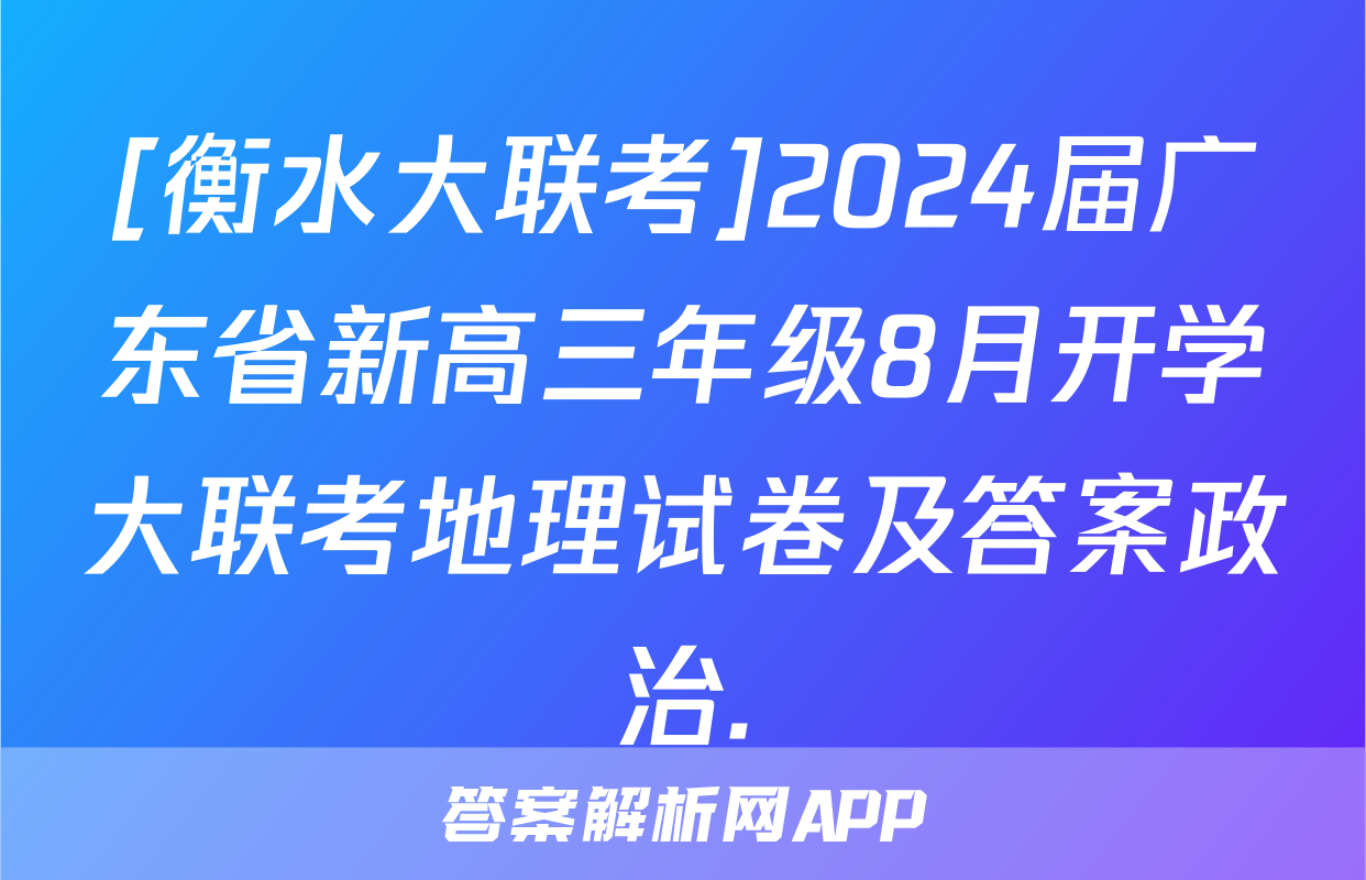 [衡水大联考]2024届广东省新高三年级8月开学大联考地理试卷及答案政治.正在持续更新,目前2024-2025英语周报答案网为大家整理了相关试题及答案,供大家查缺补漏,高效提升成绩。