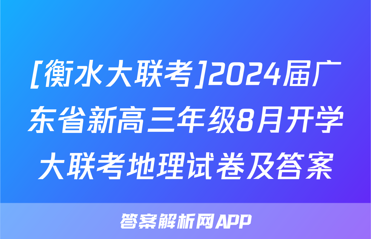[衡水大联考]2024届广东省新高三年级8月开学大联考地理试卷及答案&政治
