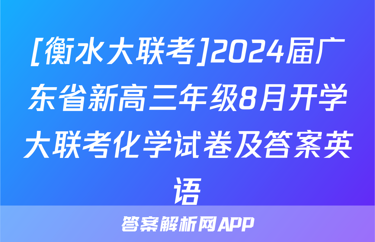 [衡水大联考]2024届广东省新高三年级8月开学大联考化学试卷及答案英语