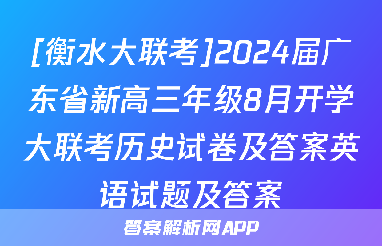 [衡水大联考]2024届广东省新高三年级8月开学大联考历史试卷及答案英语试题及答案