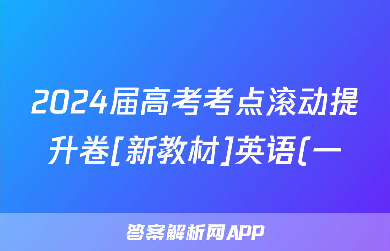 2024届高考考点滚动提升卷[新教材]英语(一)1答案正在持续更新,目前2024-2025英语周报答案网为大家整理了相关试题及答案,供大家查缺补漏,高效提升成绩。