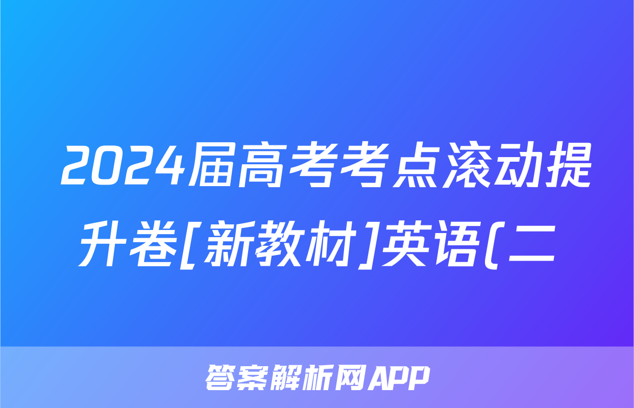2024届高考考点滚动提升卷[新教材]英语(二)2答案正在持续更新,目前2024-2025英语周报答案网为大家整理了相关试题及答案,供大家查缺补漏,高效提升成绩。