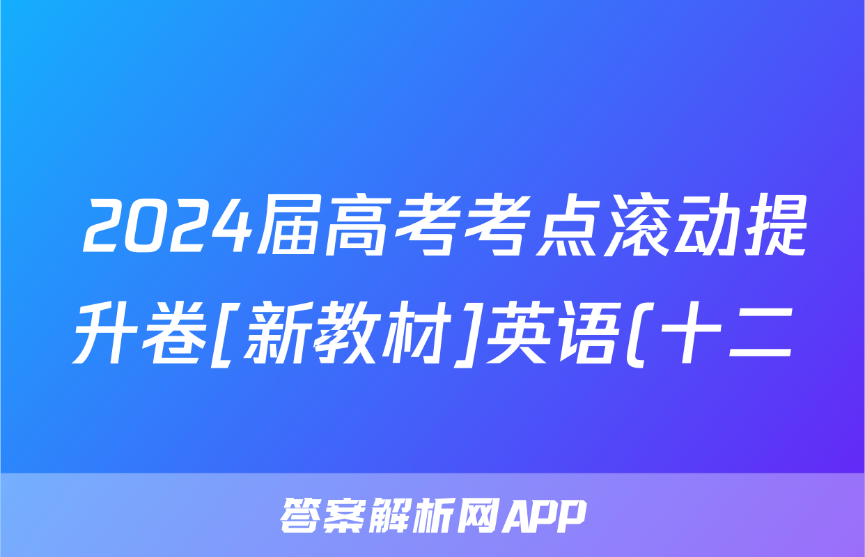 2024届高考考点滚动提升卷[新教材]英语(十二)12答案正在持续更新,目前2024-2025英语周报答案网为大家整理了相关试题及答案,供大家查缺补漏,高效提升成绩。