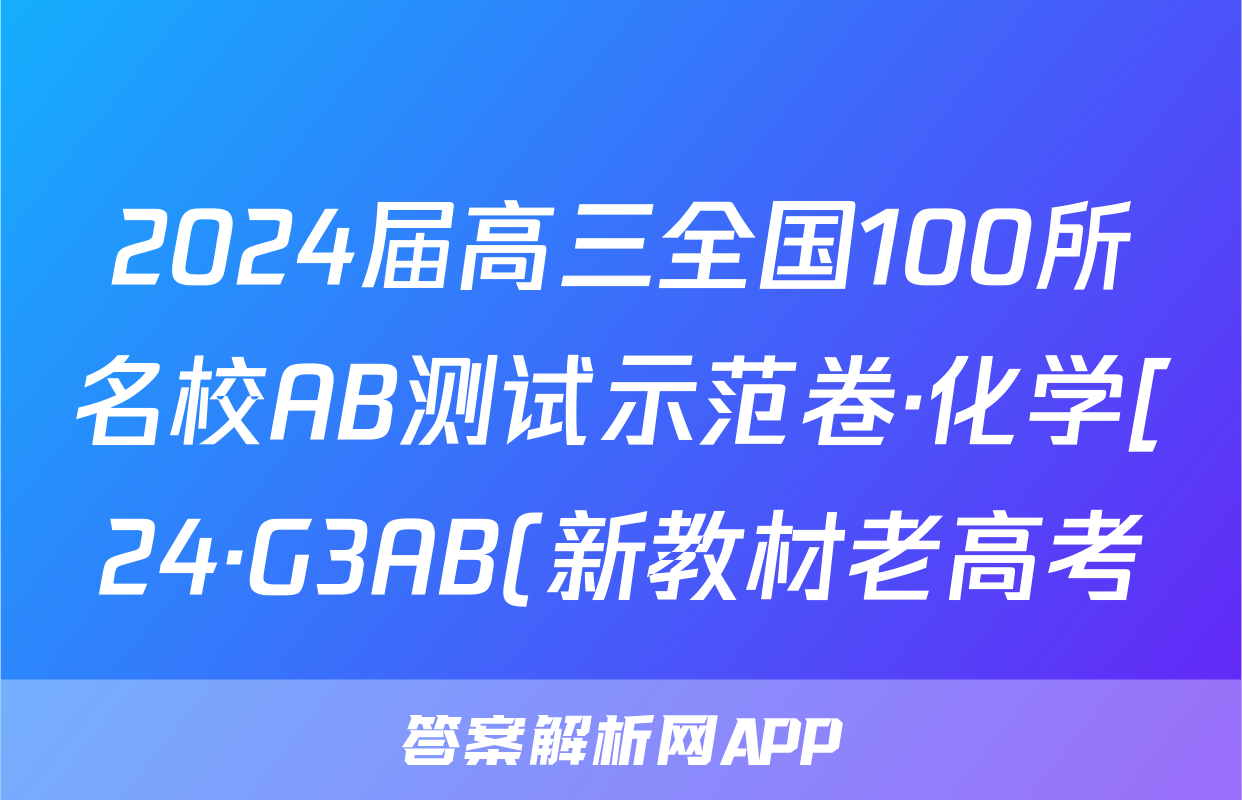 2024届高三全国100所名校AB测试示范卷·化学[24·G3AB(新教材老高考)·化学-LKB-必考-HUB]四试题正在持续更新,目前2024-2025英语周报答案网为大家整理了相关试题及答案,供大家查缺补漏,高效提升成绩。