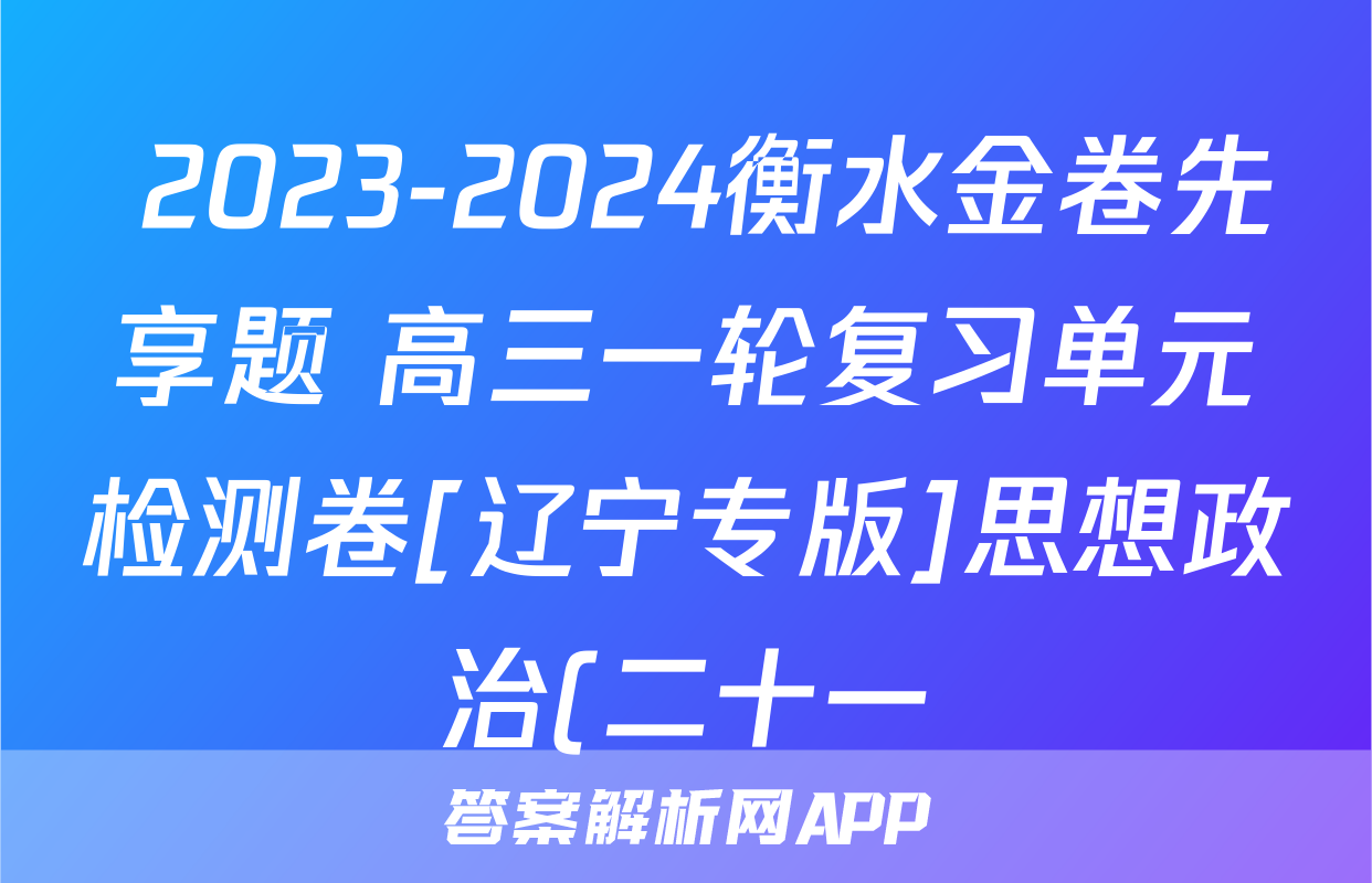 2023-2024衡水金卷先享题 高三一轮复习单元检测卷[辽宁专版]思想政治(二十一)21答案正在持续更新,目前2024-2025英语周报答案网为大家整理了相关试题及答案,供大家查缺补漏,高效提升成绩。