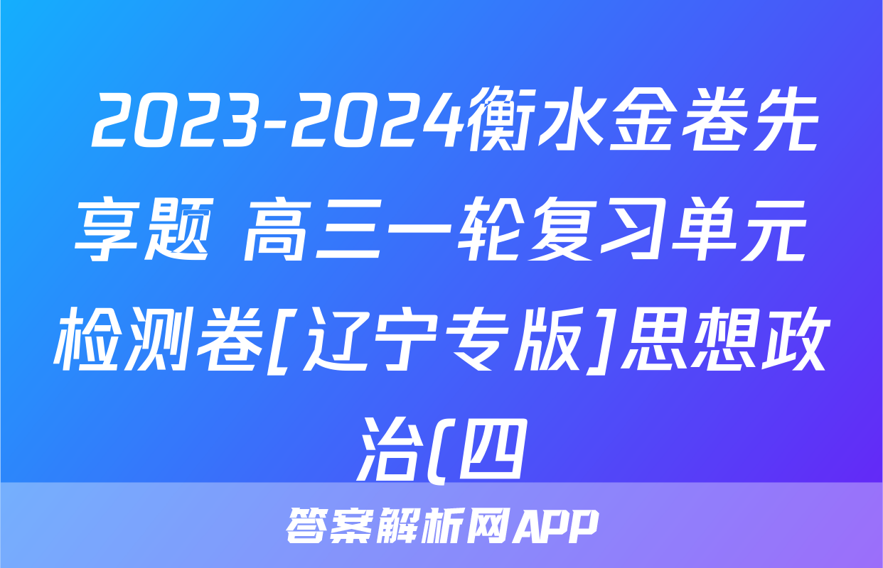 2023-2024衡水金卷先享题 高三一轮复习单元检测卷[辽宁专版]思想政治(四)4试题正在持续更新,目前2024-2025英语周报答案网为大家整理了相关试题及答案,供大家查缺补漏,高效提升成绩。