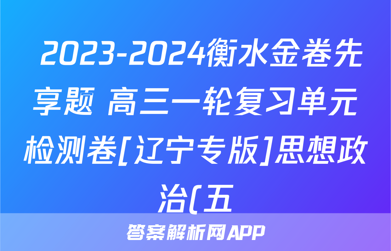2023-2024衡水金卷先享题 高三一轮复习单元检测卷[辽宁专版]思想政治(五)5答案正在持续更新,目前2024-2025英语周报答案网为大家整理了相关试题及答案,供大家查缺补漏,高效提升成绩。