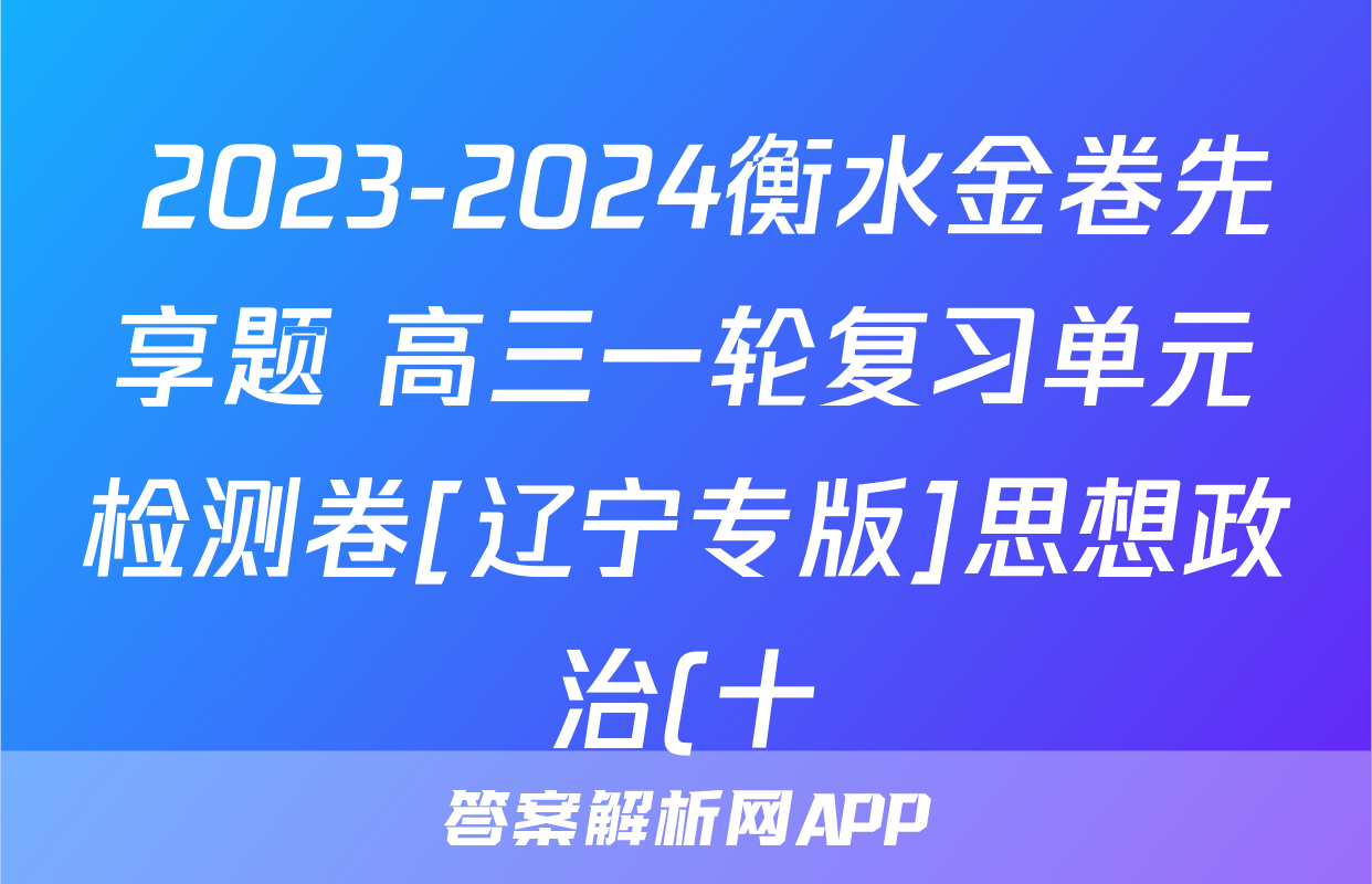 2023-2024衡水金卷先享题 高三一轮复习单元检测卷[辽宁专版]思想政治(十)10试题正在持续更新,目前2024-2025英语周报答案网为大家整理了相关试题及答案,供大家查缺补漏,高效提升成绩。