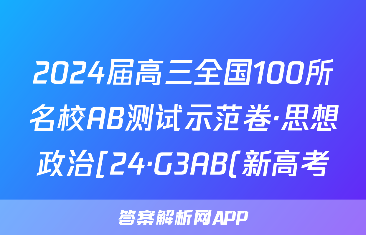 2024届高三全国100所名校AB测试示范卷·思想政治[24·G3AB(新高考)·思想政治-R-必考-FJ]八试题正在持续更新,目前2024-2025英语周报答案网为大家整理了相关试题及答案,供大家查缺补漏,高效提升成绩。