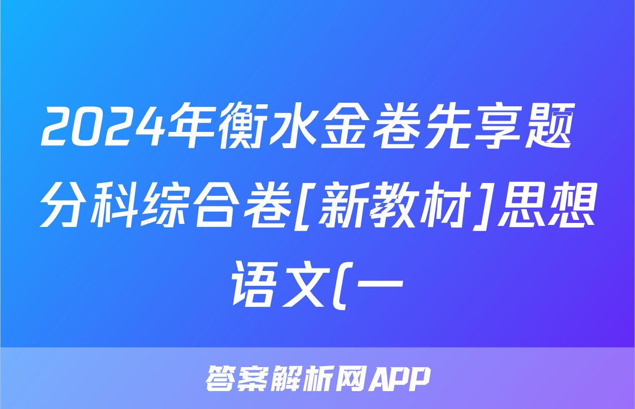 2024年衡水金卷先享题 分科综合卷[新教材]思想语文(一)1试题正在持续更新,目前2024-2025英语周报答案网为大家整理了相关试题及答案,供大家查缺补漏,高效提升成绩。