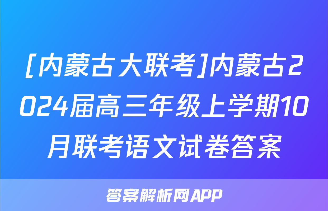 [内蒙古大联考]内蒙古2024届高三年级上学期10月联考语文试卷答案正在持续更新,目前2024-2025英语周报答案网为大家整理了相关试题及答案,供大家查缺补漏,高效提升成绩。