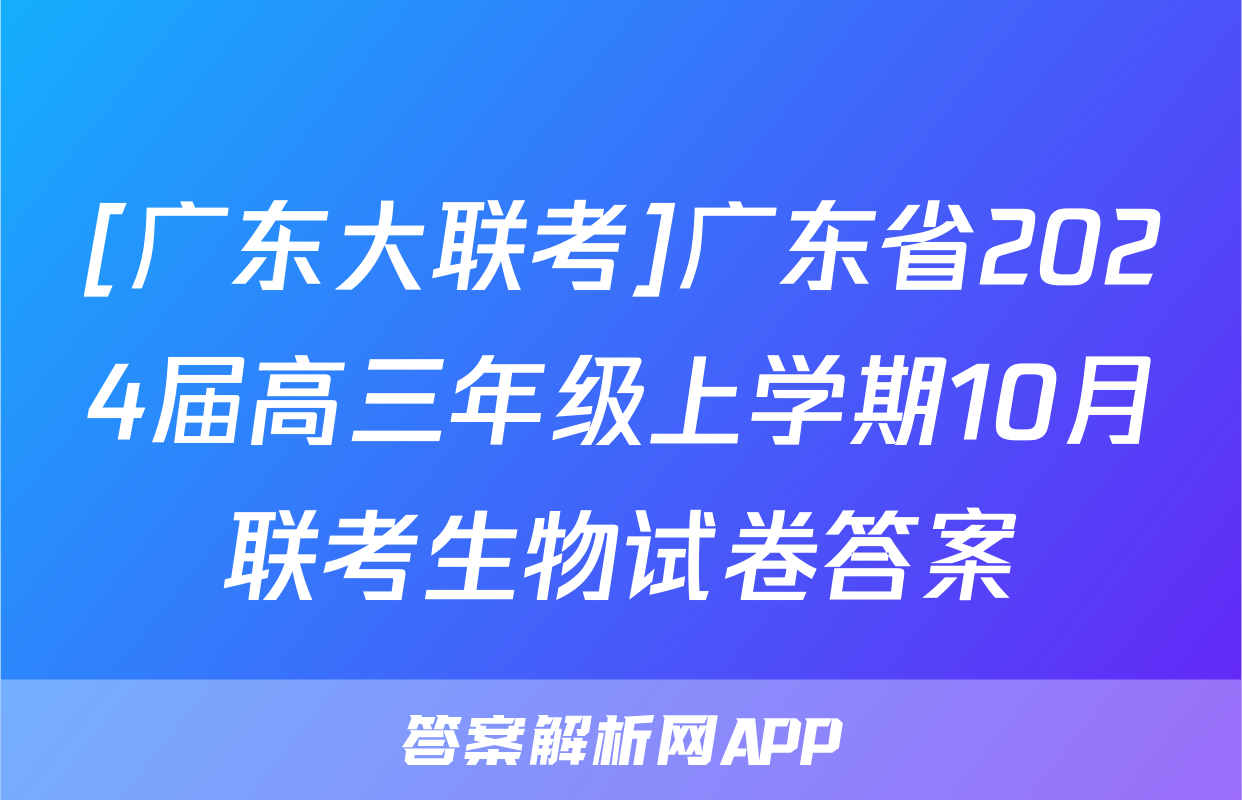[广东大联考]广东省2024届高三年级上学期10月联考生物试卷答案正在持续更新,目前2024-2025英语周报答案网为大家整理了相关试题及答案,供大家查缺补漏,高效提升成绩。