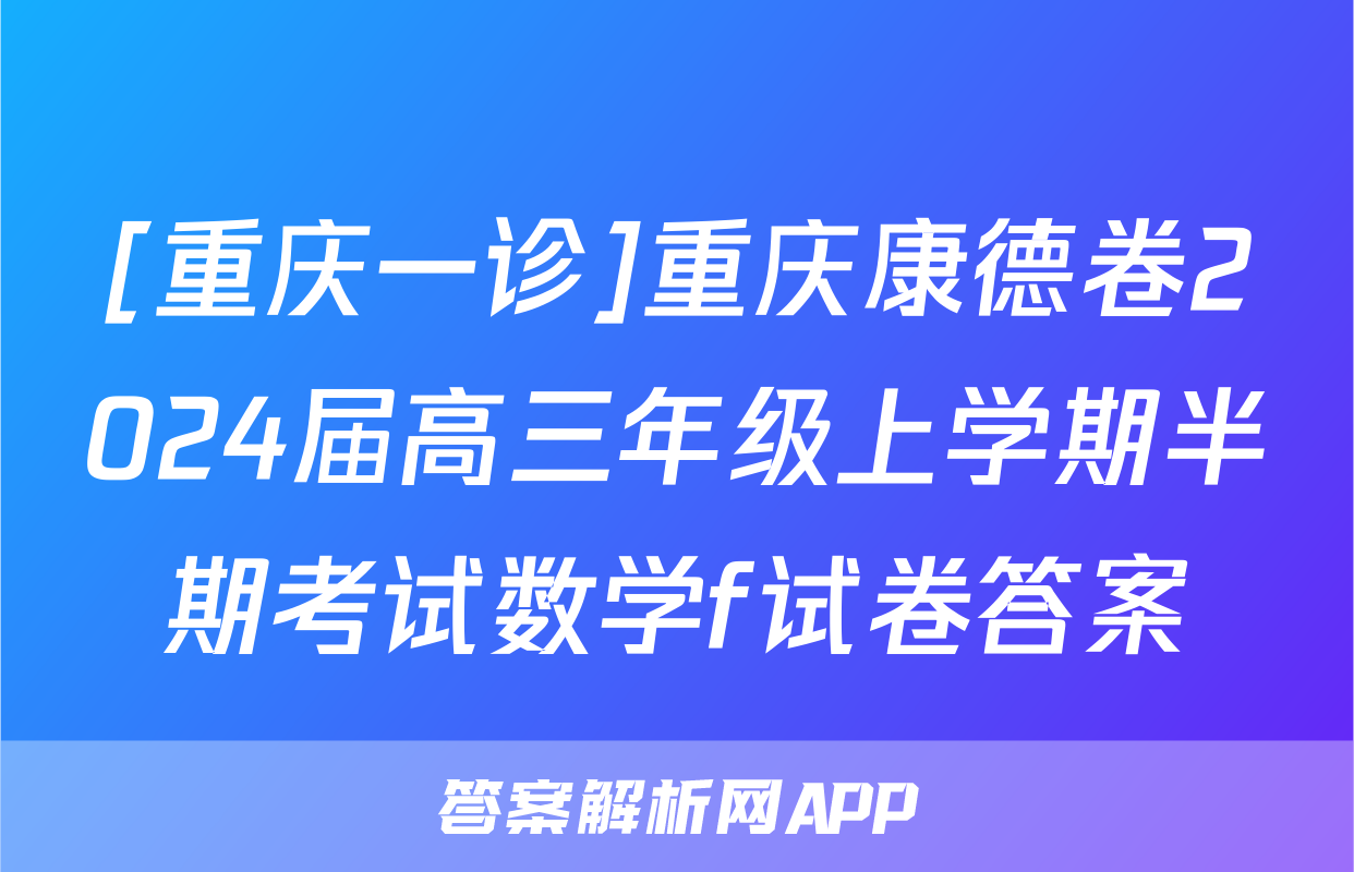 [重庆一诊]重庆康德卷2024届高三年级上学期半期考试数学f试卷答案正在持续更新,目前2024-2025英语周报答案网为大家整理了相关试题及答案,供大家查缺补漏,高效提升成绩。