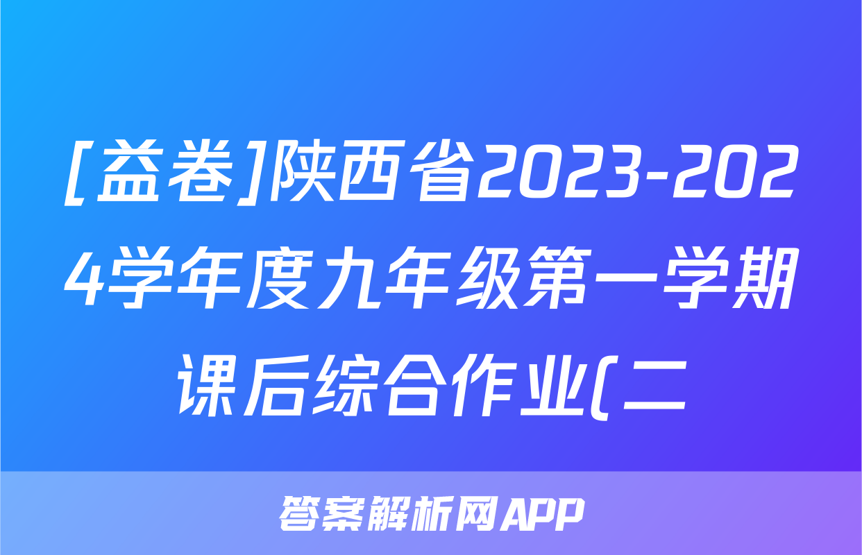 [益卷]陕西省2023-2024学年度九年级第一学期课后综合作业(二)x物理试卷答案正在持续更新,目前2024-2025英语周报答案网为大家整理了相关试题及答案,供大家查缺补漏,高效提升成绩。