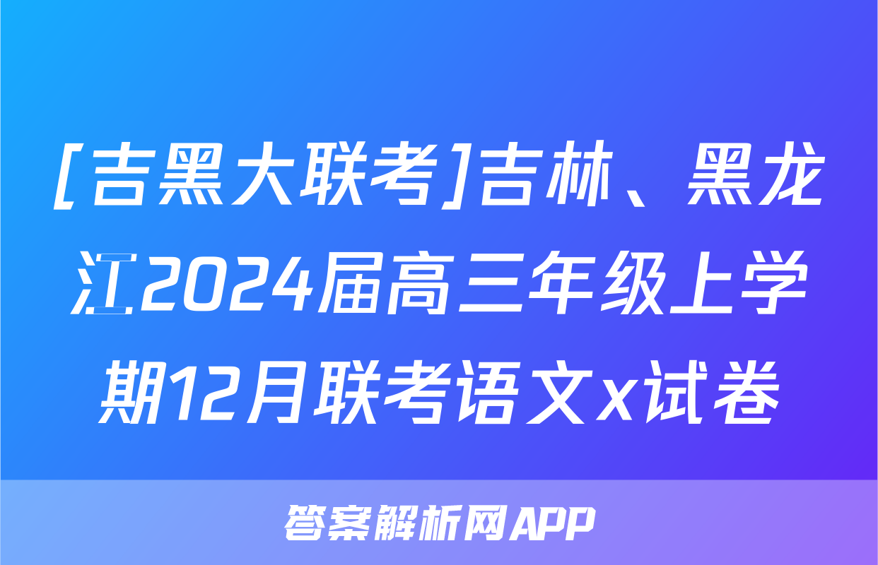 [吉黑大联考]吉林、黑龙江2024届高三年级上学期12月联考语文x试卷正在持续更新,目前2024-2025英语周报答案网为大家整理了相关试题及答案,供大家查缺补漏,高效提升成绩。