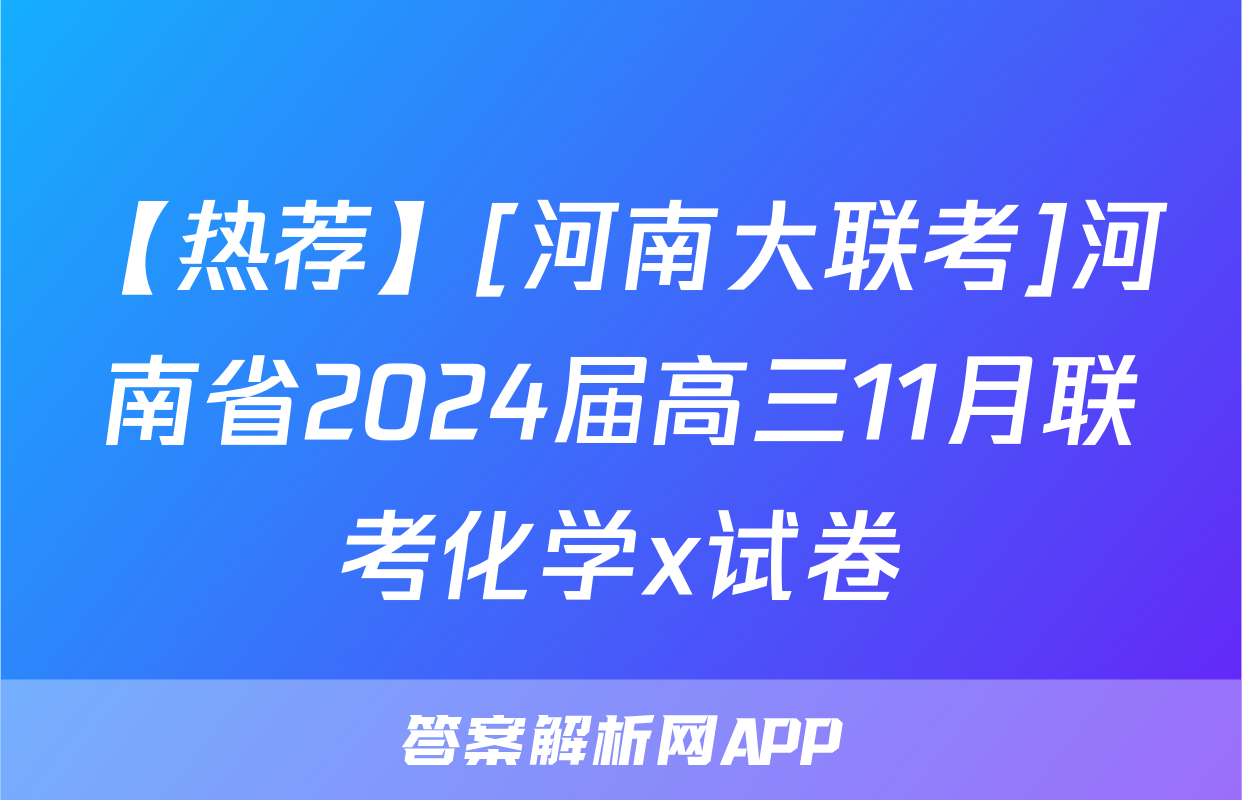 【热荐】[河南大联考]河南省2024届高三11月联考化学x试卷正在持续更新,目前2024-2025英语周报答案网为大家整理了相关试题及答案,供大家查缺补漏,高效提升成绩。