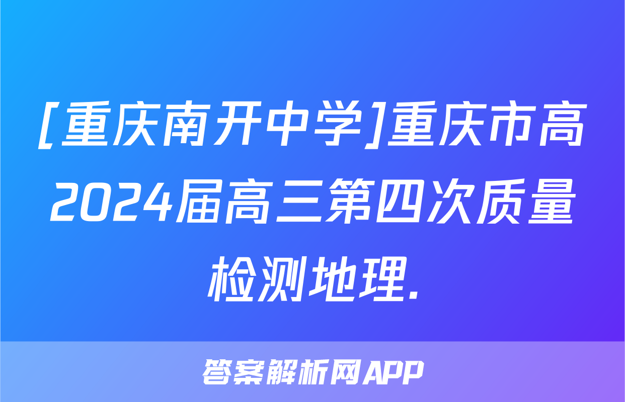 [重庆南开中学]重庆市高2024届高三第四次质量检测地理.正在持续更新,目前2024-2025英语周报答案网为大家整理了相关试题及答案,供大家查缺补漏,高效提升成绩。