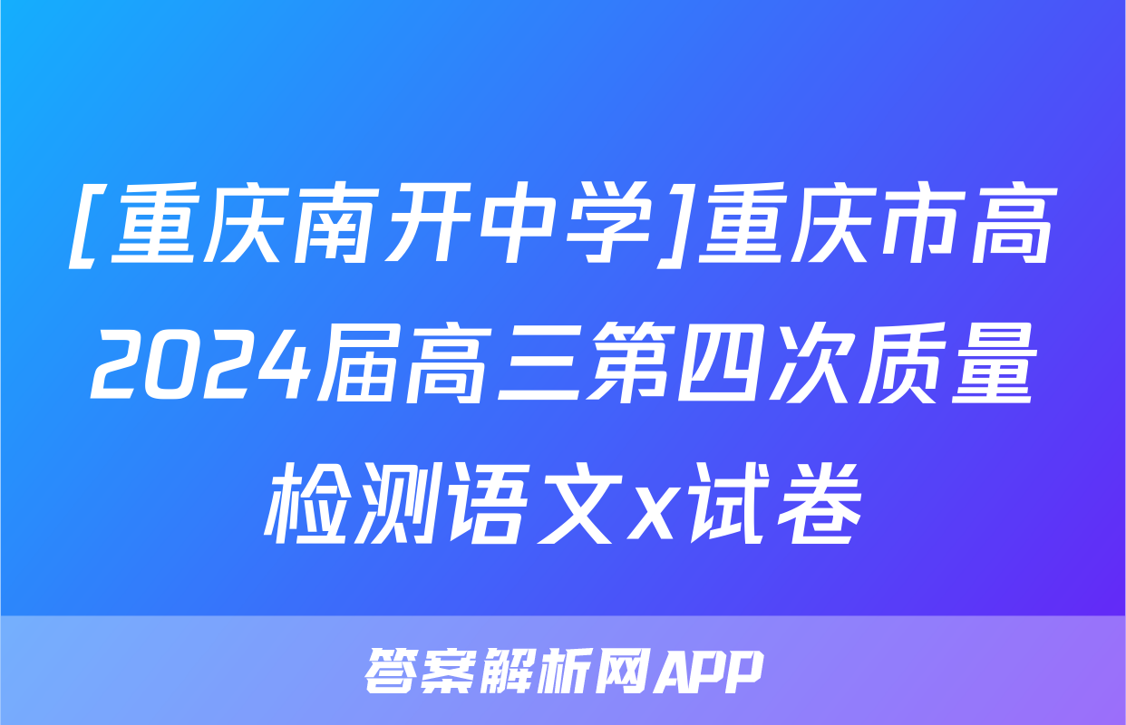 [重庆南开中学]重庆市高2024届高三第四次质量检测语文x试卷正在持续更新,目前2024-2025英语周报答案网为大家整理了相关试题及答案,供大家查缺补漏,高效提升成绩。