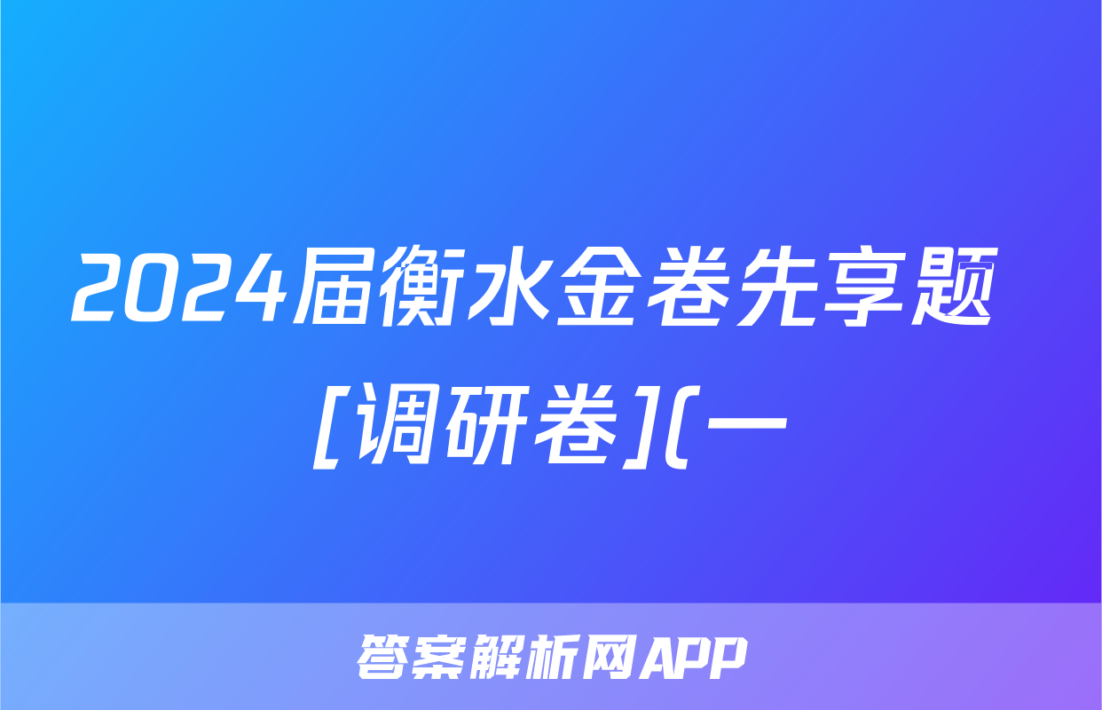 1、2024届衡水金卷先享题 [调研卷](一)1思想政治(JJ)试题