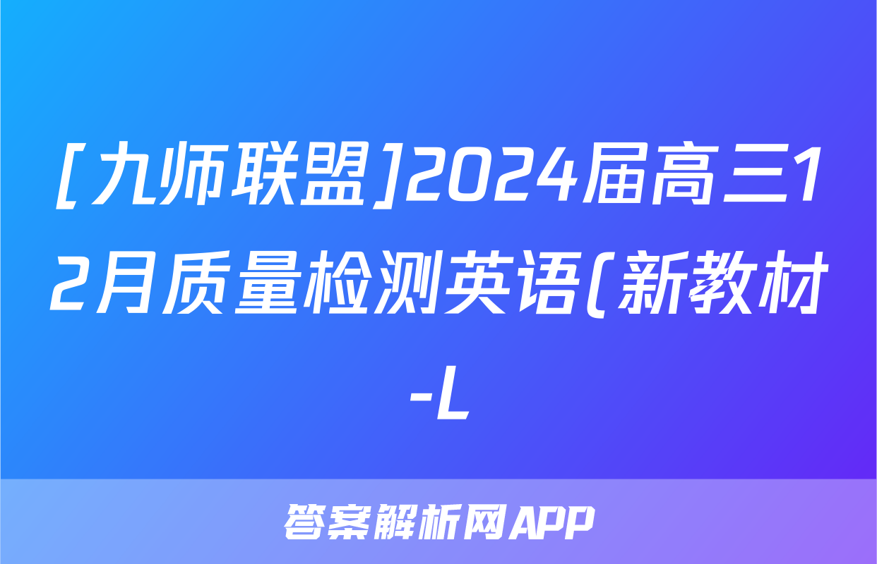 2、九师联盟 2024届高三12月质量检测英语(新教材-L)试题