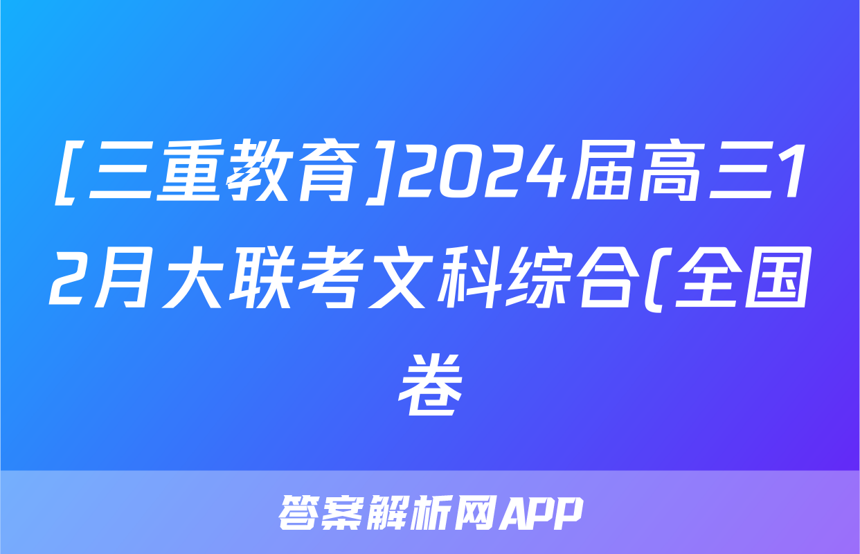 [三重教育]2024届高三12月大联考文科综合(全国卷)试题正在持续更新,目前2024-2025英语周报答案网为大家整理了相关试题及答案,供大家查缺补漏,高效提升成绩。