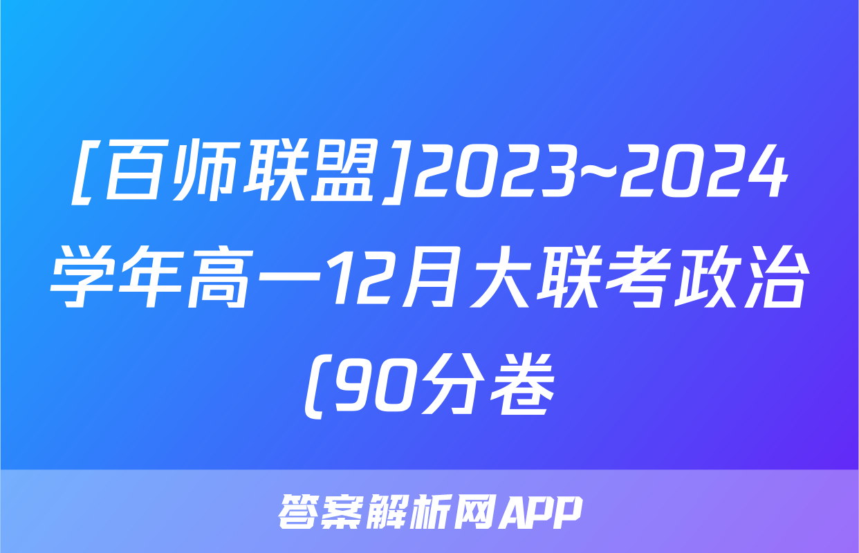 [百师联盟]2023~2024学年高一12月大联考政治(90分卷)答案