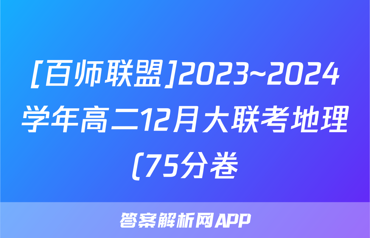 [百师联盟]2023~2024学年高二12月大联考地理(75分卷)答案