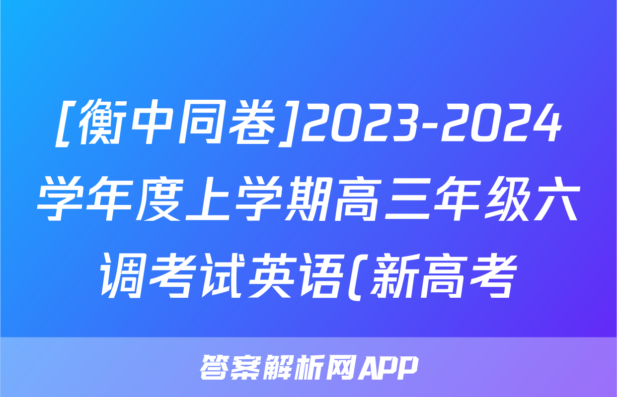 [衡中同卷]2023-2024学年度上学期高三年级六调考试英语(新高考)答案正在持续更新,目前2024-2025英语周报答案网为大家整理了相关试题及答案,供大家查缺补漏,高效提升成绩。