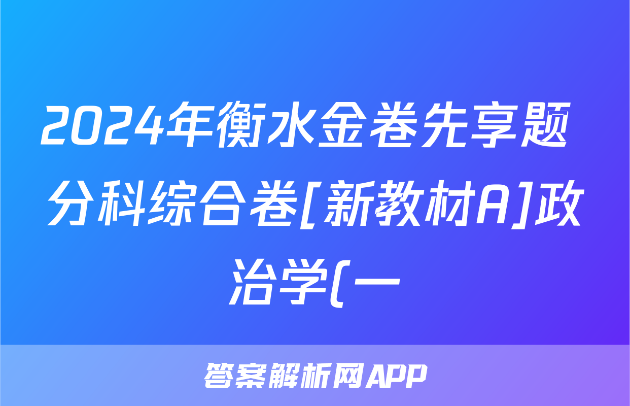 2024年衡水金卷先享题 分科综合卷[新教材A]政治学(一)1答案正在持续更新,目前2024-2025英语周报答案网为大家整理了相关试题及答案,供大家查缺补漏,高效提升成绩。