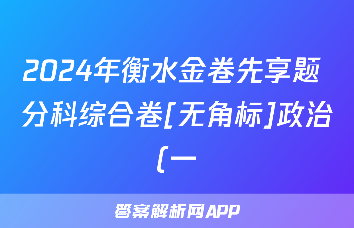 2024年衡水金卷先享题 分科综合卷[无角标]政治(一)1试题正在持续更新,目前2024-2025英语周报答案网为大家整理了相关试题及答案,供大家查缺补漏,高效提升成绩。