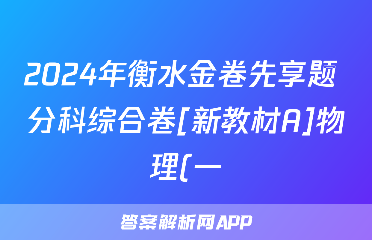 2024年衡水金卷先享题 分科综合卷[新教材A]物理(一)1答案正在持续更新,目前2024-2025英语周报答案网为大家整理了相关试题及答案,供大家查缺补漏,高效提升成绩。