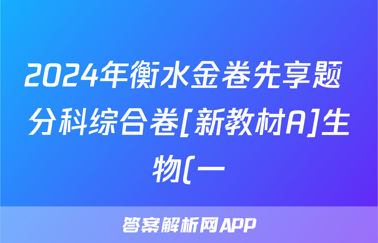 2024年衡水金卷先享题 分科综合卷[新教材A]生物(一)1试题正在持续更新,目前2024-2025英语周报答案网为大家整理了相关试题及答案,供大家查缺补漏,高效提升成绩。