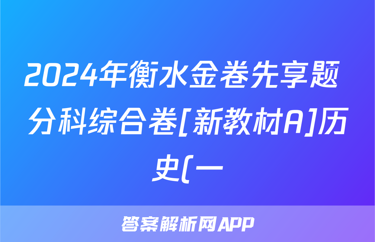 2024年衡水金卷先享题 分科综合卷[新教材A]历史(一)1试题正在持续更新,目前2024-2025英语周报答案网为大家整理了相关试题及答案,供大家查缺补漏,高效提升成绩。