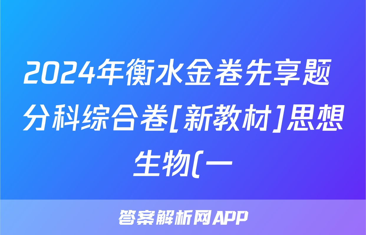 2024年衡水金卷先享题 分科综合卷[新教材]思想生物(一)1试题正在持续更新,目前2024-2025英语周报答案网为大家整理了相关试题及答案,供大家查缺补漏,高效提升成绩。