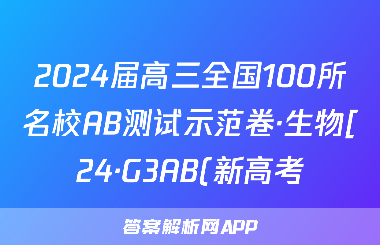 2024届高三全国100所名校AB测试示范卷·生物[24·G3AB(新高考)·生物-SJB-必考-HUN]三试题正在持续更新,目前2024-2025英语周报答案网为大家整理了相关试题及答案,供大家查缺补漏,高效提升成绩。