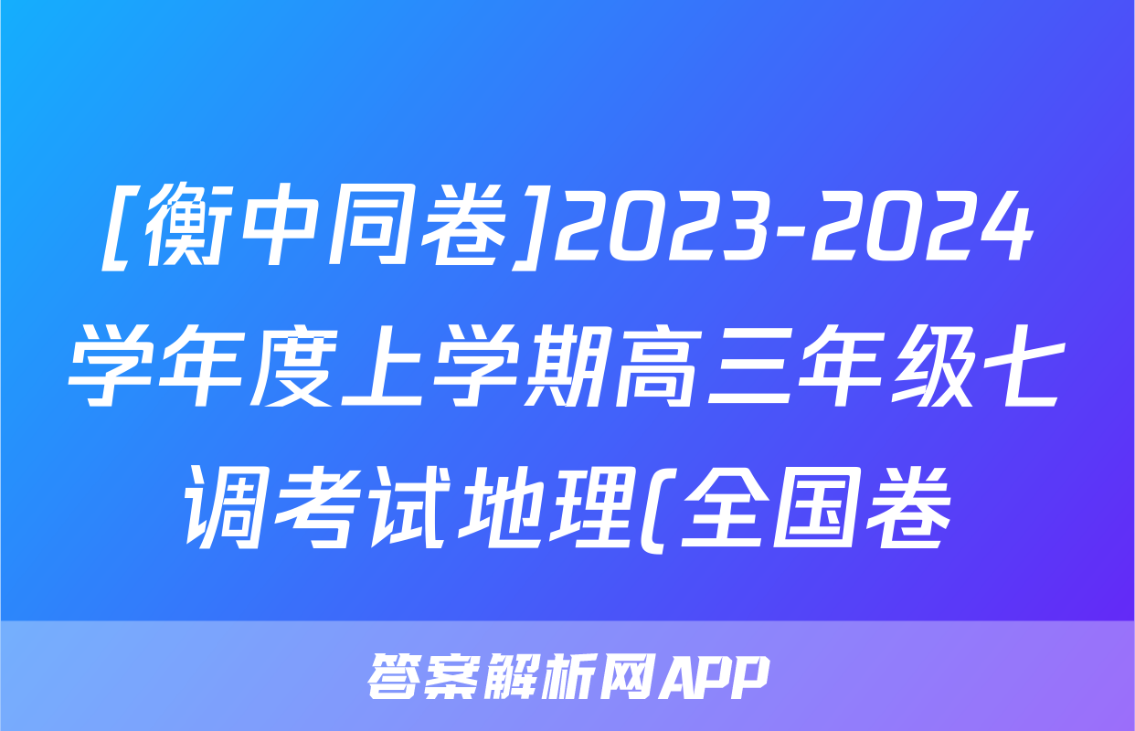 [衡中同卷]2023-2024学年度上学期高三年级七调考试地理(全国卷)试题正在持续更新,目前2024-2025英语周报答案网为大家整理了相关试题及答案,供大家查缺补漏,高效提升成绩。
