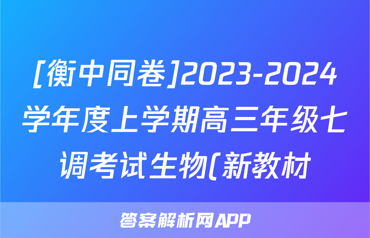 [衡中同卷]2023-2024学年度上学期高三年级七调考试生物(新教材)答案正在持续更新,目前2024-2025英语周报答案网为大家整理了相关试题及答案,供大家查缺补漏,高效提升成绩。