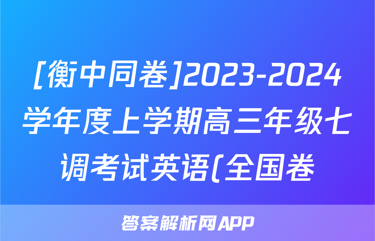 [衡中同卷]2023-2024学年度上学期高三年级七调考试英语(全国卷)试题正在持续更新,目前2024-2025英语周报答案网为大家整理了相关试题及答案,供大家查缺补漏,高效提升成绩。