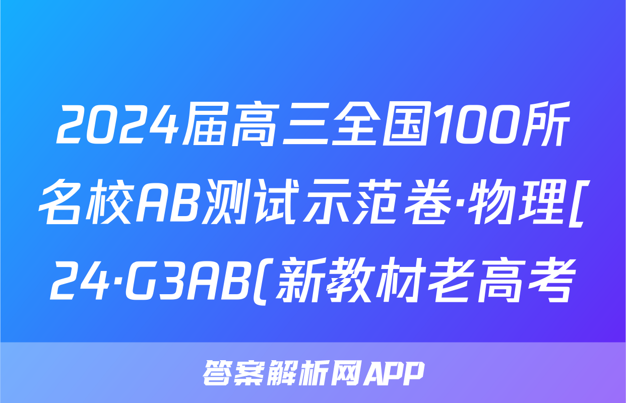 2024届高三全国100所名校AB测试示范卷·物理[24·G3AB(新教材老高考)·物理-LKB-必考-QG]八试题正在持续更新,目前2024-2025英语周报答案网为大家整理了相关试题及答案,供大家查缺补漏,高效提升成绩。