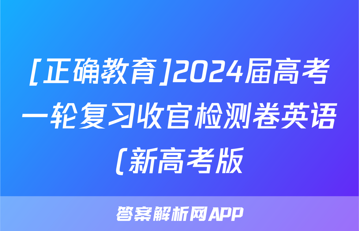 [正确教育]2024届高考一轮复习收官检测卷英语(新高考版)答案正在持续更新,目前2024-2025英语周报答案网为大家整理了相关试题及答案,供大家查缺补漏,高效提升成绩。