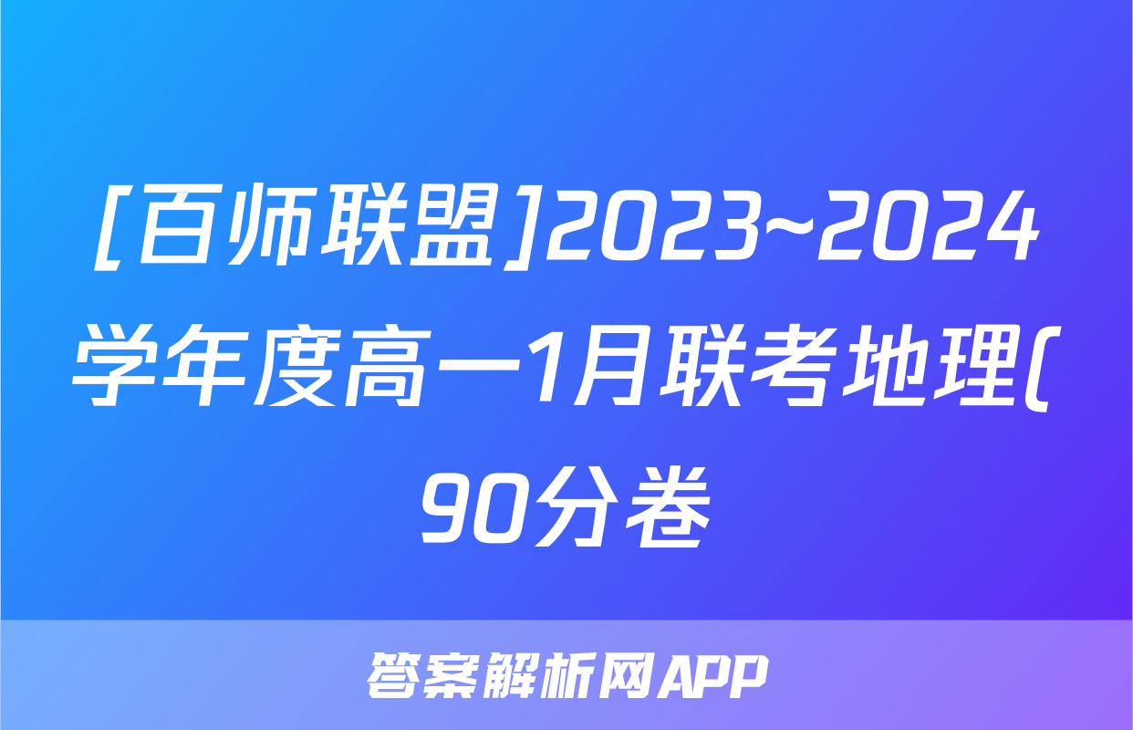 [百师联盟]2023~2024学年度高一1月联考地理(90分卷)试题正在持续更新,目前2024-2025英语周报答案网为大家整理了相关试题及答案,供大家查缺补漏,高效提升成绩。